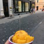Nisem ljubitelj sladoleda, vsake toliko pa priznam, da mi zapaše. Glede na to, da je poletje, se mi je to zgodilo tudi pred par dnevi. Vstopim in vidim, da imajo mango – meni eden izmed najljupših sladoledov, čeprav se zavedam, da je narejen iz pulpe in da je v njem veliko sladkorja. In še en okus – čokolada z rižem. Glede na to, da je zadnje dve leti nisem jedel, ker še nisem našel veganske, naročim ta dva okusa. Ja, videl sem ceno 2,50 evra in sem vseeno naročil.