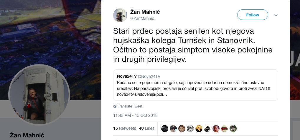 Stari prdec postaja senilen kot njegova hujskaška kolega Turnšek in Stanovnik. Očitno to postaja simptom visoke pokojnine in drugih privilegijev. https://t.co/Ige5cquw83