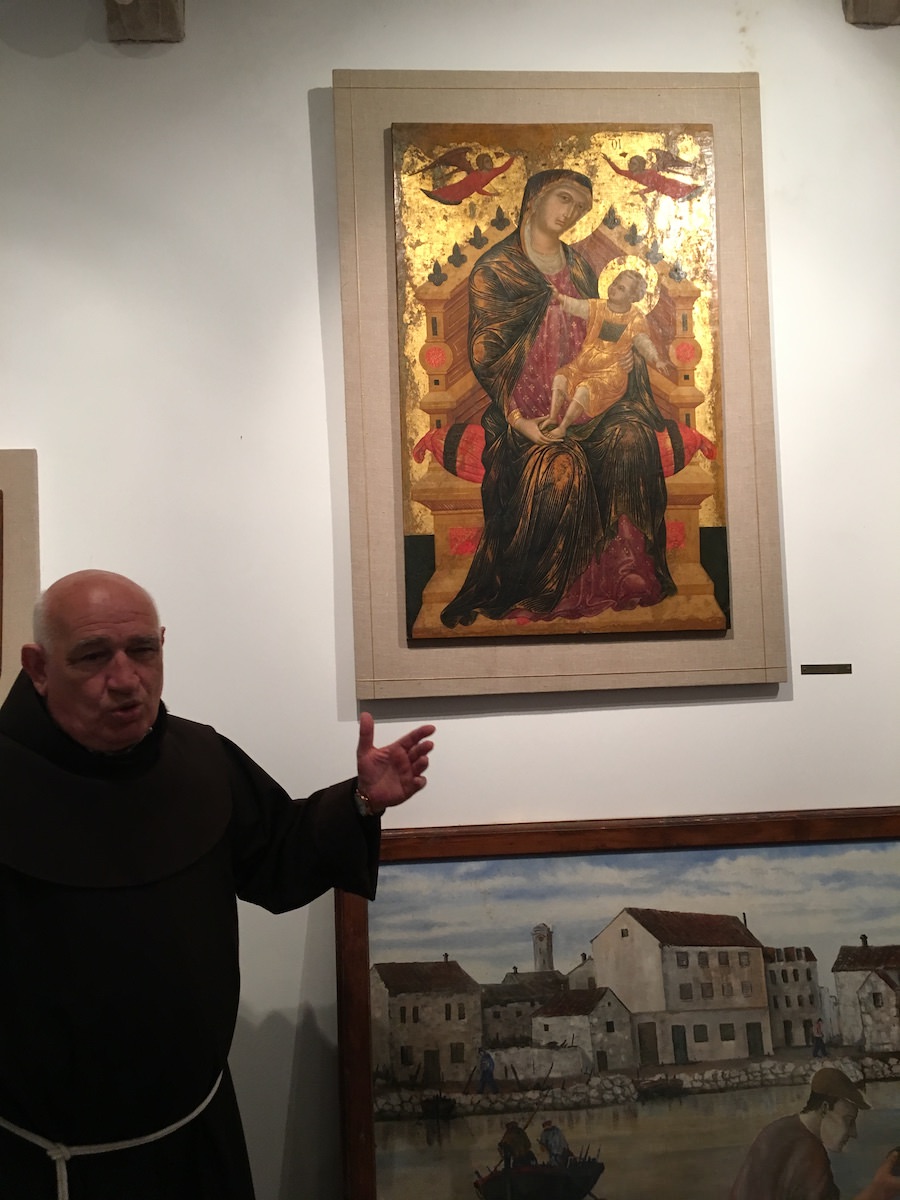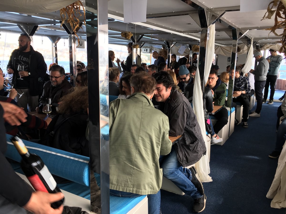 Prvi dan se je začel na ladji – med vožnjo do Krapanja, manjšega otoka pred Šibenikom, ki ima 100 prebivalcev in na katerem je velik samostan s(m)o jedli in pili. Glede na moj način prehranjevanja in nepitja alkohola sem sicer malce prikrajšan, ampak tudi zame se je našla hrana. Krapanj je leta 1466 prešel v last frančiškanov, znan pa je predvsem po nabiranju spužev in po samostanu. Na otoku so nas pričakale ostrige in primerna vina za zraven. Sledil je ogled samostana in kasneje ogled muzeja potapljanja v hotelu Spongiola.