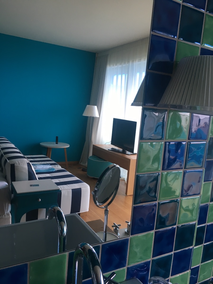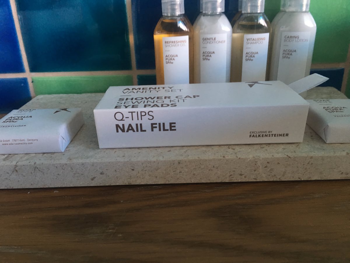 Sam lobij je velik in odprt, prijazno osebje, ki se zna tudi nasmejati in predvsem vse osebje v hotelu pozdravlja in se zna nasmehniti. Soba, ki sem jo dobil je velika, ima dvojno posteljo, banjo in tuš kabino, stranišče, ki je skrito za vrati in pa čudovit pogled s terase (ali postelje) na morje. Ko sem vstopil v sobo sem se navdušil nad banjo, ki jo resnično pogrešam in jo bom v teh dneh definitivno izkoristil. V sobi je vse barvno usklajeno, prav tako pa ima vsaka stvar svoj namen – očitno je nekdo zelo dobro premislil kako umestiti les, ploščice in različne barve skupaj. Kljub temu, da nisem zagovornik močnih barv na stenah, pa je tole povsem drugačna zgodba. Predvsem pa je je pogled iz postelje, ali z balkona na obalo in morje spodaj več kot čudovit.