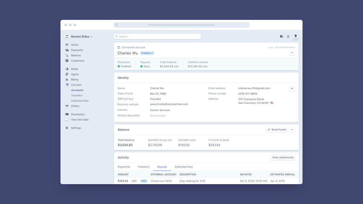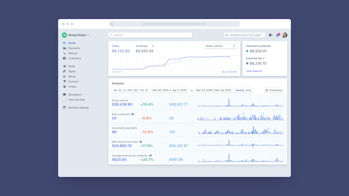 Še nikoli ni bilo spletno sprejemanje plačil tako enostavno, kot to omogoča platforma Stripe – na spletnem mestu, aplikaciji za iPhone, mobilni spletni strani, namizni aplikaciji ali kjer koli drugje. Pred ustanovitvijo platforme Stripe je moral razvijalec programske opreme, ki je želel sprejeti denar na spletu, več tednov brskati po finančni birokraciji, da je ustvaril trgovalni račun in prehod. Razvijalci lahko zdaj, ko jim je na voljo platforma Stripe, dodajo nekaj vrstic kode in v samo petih minutah začnejo sprejemati plačila od kogar koli od koder koli po svetu.