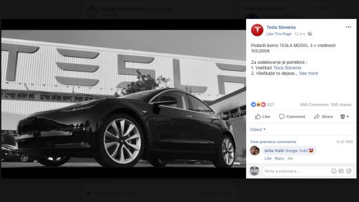 30/11/2018 Tesla 3 za 100.000 evrov je lahko vaša na Facebooku Tesla Slovenija Tesla Slovenija na Facebooku podarja avto Tesla 3 v vrednosti 100.000 evrov. Gre za dobro poznano prakso, ki…