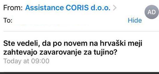21/04/2017 Coris / Ste vedeli, da po novem na hrvaški meji zahtevajo zavarovanje za tujino? Ko dobiš elektronsko sporočilo z naslovom “Ste vedeli, da po novem na hrvaški meji zahtevajo zavarovanje za tujino?”…