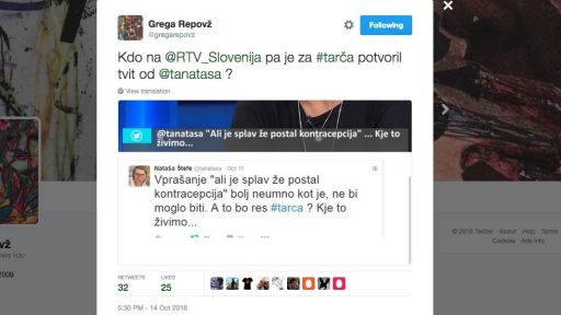 15/10/2016 Kako nacionalka ponareja tvite, ki jih vidimo na TV ekranu / #tarca in Nataša Štefe Nisem zagovornik teorij zarote, čeprav jih imam rad. V oddaji Tarča, ki je razburila javnost so bili med…