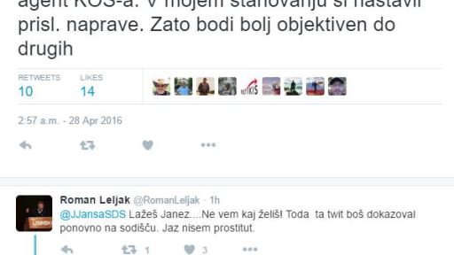 28/04/2016 Janez Janša VS Roman Leljak / chicken fight na Twitterju Janez Janša in Roman Leljak sta si povedala par zanimivih dejstev na Twitterju in tako omogočila, da vsi…