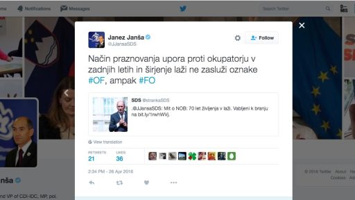 27/04/2016 Janez Janša / Žiga Turk / Jože Tanko in njihov pogled na OF / #FOJanša Dan upora proti okupatorju mora desnica izkoristiti za svoje poslanstvo – deliti narod, potvarjati zgodovino, predvsem pa napisati…