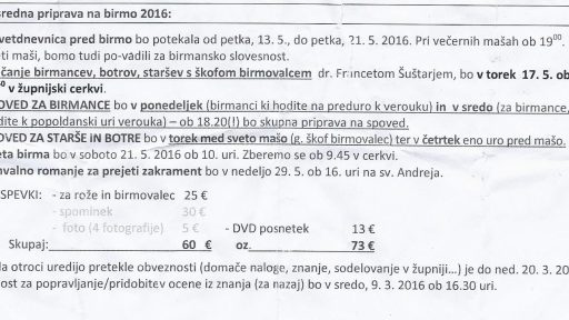 18/04/2016 Cerkev sprejema zgolj prostovoljne prispevke / cenik za birmo O cerkvi in prostovoljnih prispevkih, ki jih prejemajo v cerkvah in za katere ne potrebujejo davčnih blagajn (posledično…