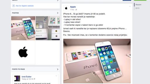 27/04/2015 Si želiš Apple iPhone 6 na Facebooku? Fejk! Si želiš Apple iPhone 6 na Facebooku? Jeap, zgodba je znana. Na Facebooku ni nič zastonj, pa naj…