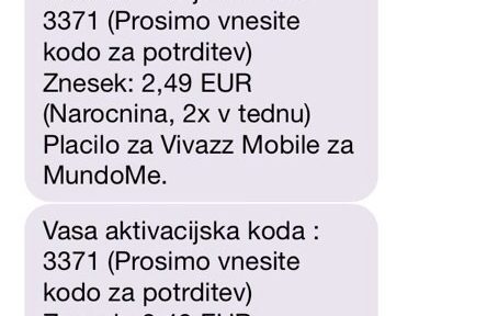 11/10/2014 SMS s številke 66559999 Ste srečnež in ste dobili SMS s številke 66559999 in vsebino – Vasa aktivacijska koda je 3371 (Prosimo…