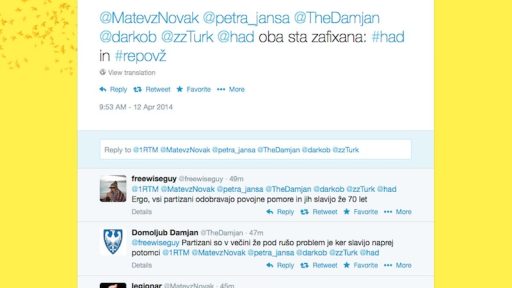 12/04/2014 Vojščaki SDS na Twitterju in mirno sobotno jutro Prijetno sobotno jutro, ki ga začneš z branjem Mladine, se lahko tudi spremeni, če retvitaš uvodnik Zločini sedanjosti,…