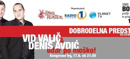 13/06/2013 Vid Valič & Denis Avdič – Udar po moško! V ponedeljek, 17.6.2013, ob 21.00 bo na Kongresnem trgu v Ljubljani dobrodelna predstava, ki jo skupaj pripravljajo Špas…