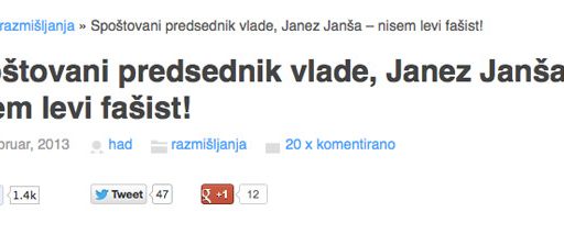 09/02/2013 Spoštovani predsednik vlade, Janez Janša – nisem levi fašist! Sem državljan republike Slovenije. Vi pa ste, no, vsaj za čas mojega pisanja tega zapisa ste še bili,…