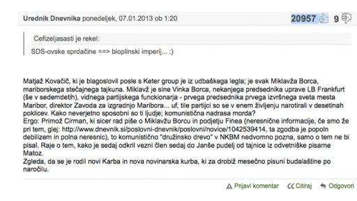 07/01/2013 Kako komunicirajo SDS vojščaki na medijskih portalih Dejstvo je, da ima SDS odlično “organizirano” mrežo vojščakov, ki za njih upravljajo komuniciranje na medijskih portalih. Tako…