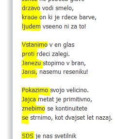 10/01/2013 Ko pesmica podpore Janezu Janši sesuje spletno mesto SDS V kolikor želite javno podpreti predsednika, nam vašo podporo pošljite na [email protected] – je poziv vsem simpatizerjem stranke…