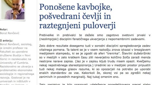 15/12/2011 Borut Rončević v kolumni na Siol.net ne razume pomena trenirk Borut Rončević, sociolog, je izredni profesor na Fakulteti za uporabne družbene študije v Novi Gorici in raziskovalec na…