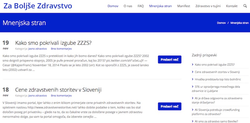 09/02/2015Za boljše zdravstvo – pregled objav Pred parimi meseci sem se odločil, da zaradi razmer v zdravstvu naredim spletno mesto – Za boljše zdravstvo,…